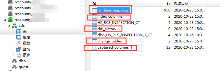 查看哪些表启用了CDC功能: