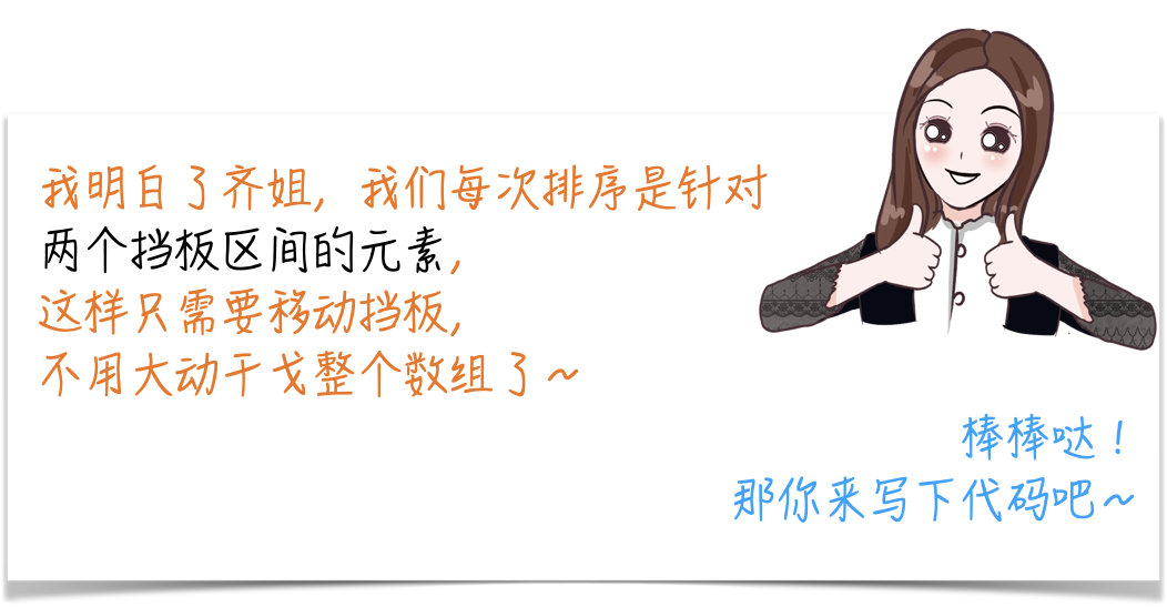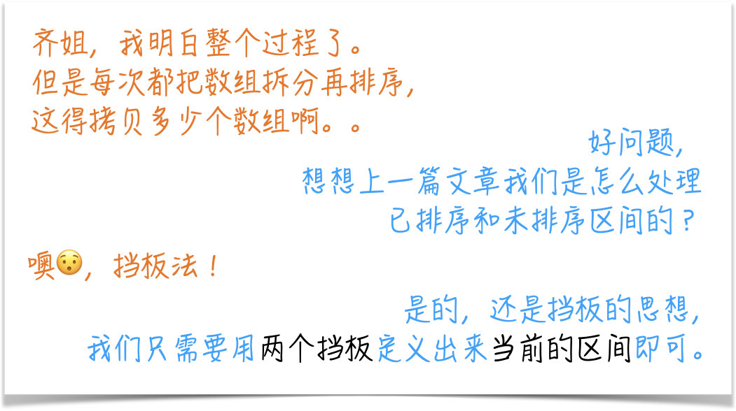 要注意,这里的等于号跟哪边,会影响这个排序算法的稳定性。不清楚稳定性的同学快去翻一下上一篇文章啦~