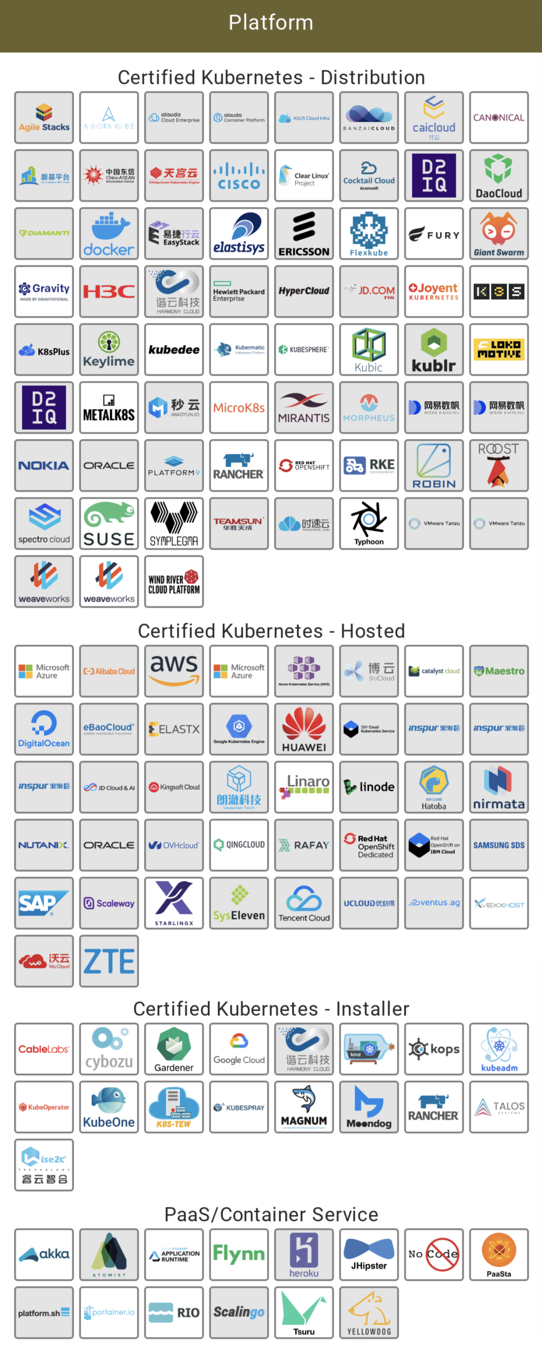 为了推动 Kubernetes 产品的一致性和可移植性,践行 Kubernetes 被创立时的初心,CNCF 还启动了 Kubernetes 一致性认证计划,目前几乎所有的互联网巨头都通过了这个一致性认证: