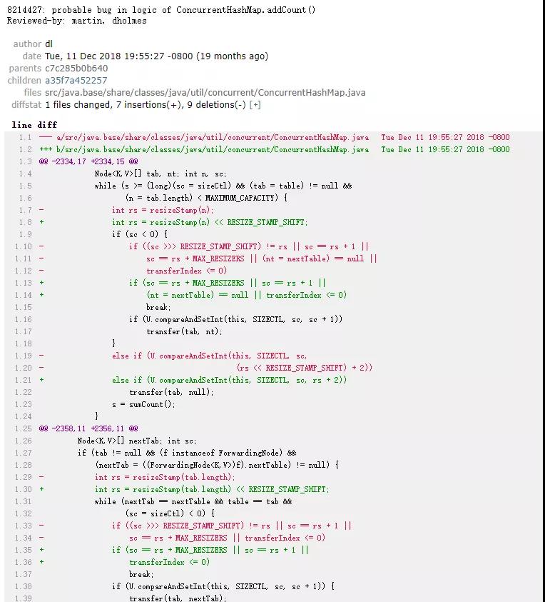 可以看到在第11行代码处,已经改为了initialCapacity / loadFactor的方式,解决了这个bug点(Java 8中没有修复这个bug其实也无妨,毕竟多扩容一倍少扩容一倍并不是什么严重的逻辑bug)。