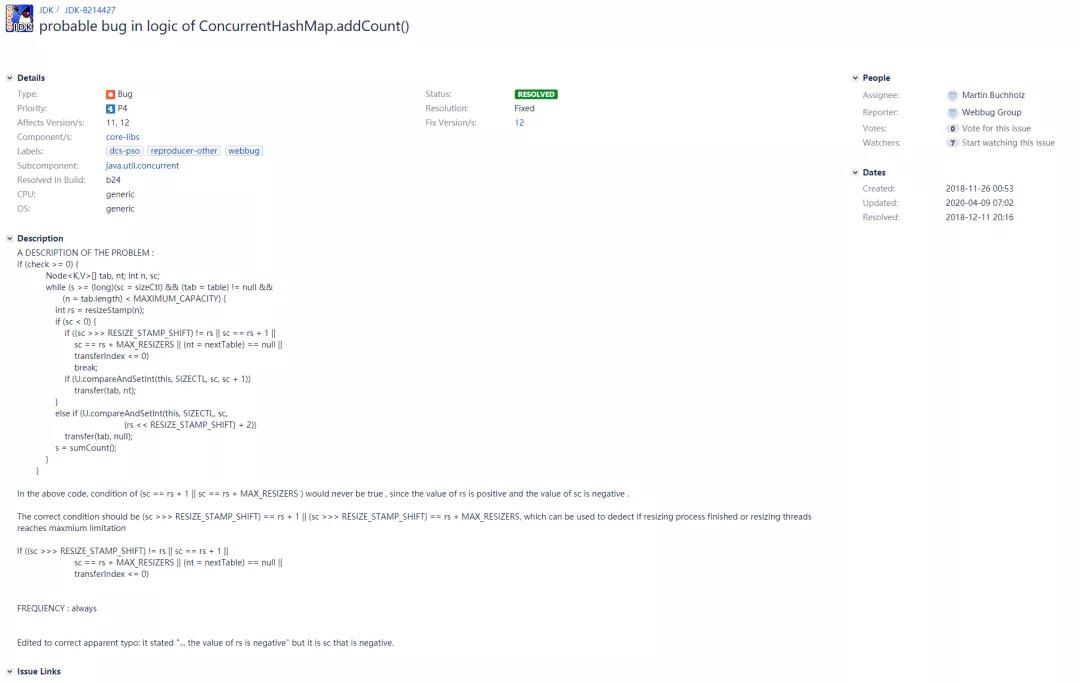 从上面可以抓取到几个信息:这个bug从Java 8开始就已经有了,已经在Java 11.0.1中修复了。既然如此,我们就来看看这块改成了什么。以下是Java 14.0.2中的ConcurrentHashMap单参数构造器的源码: