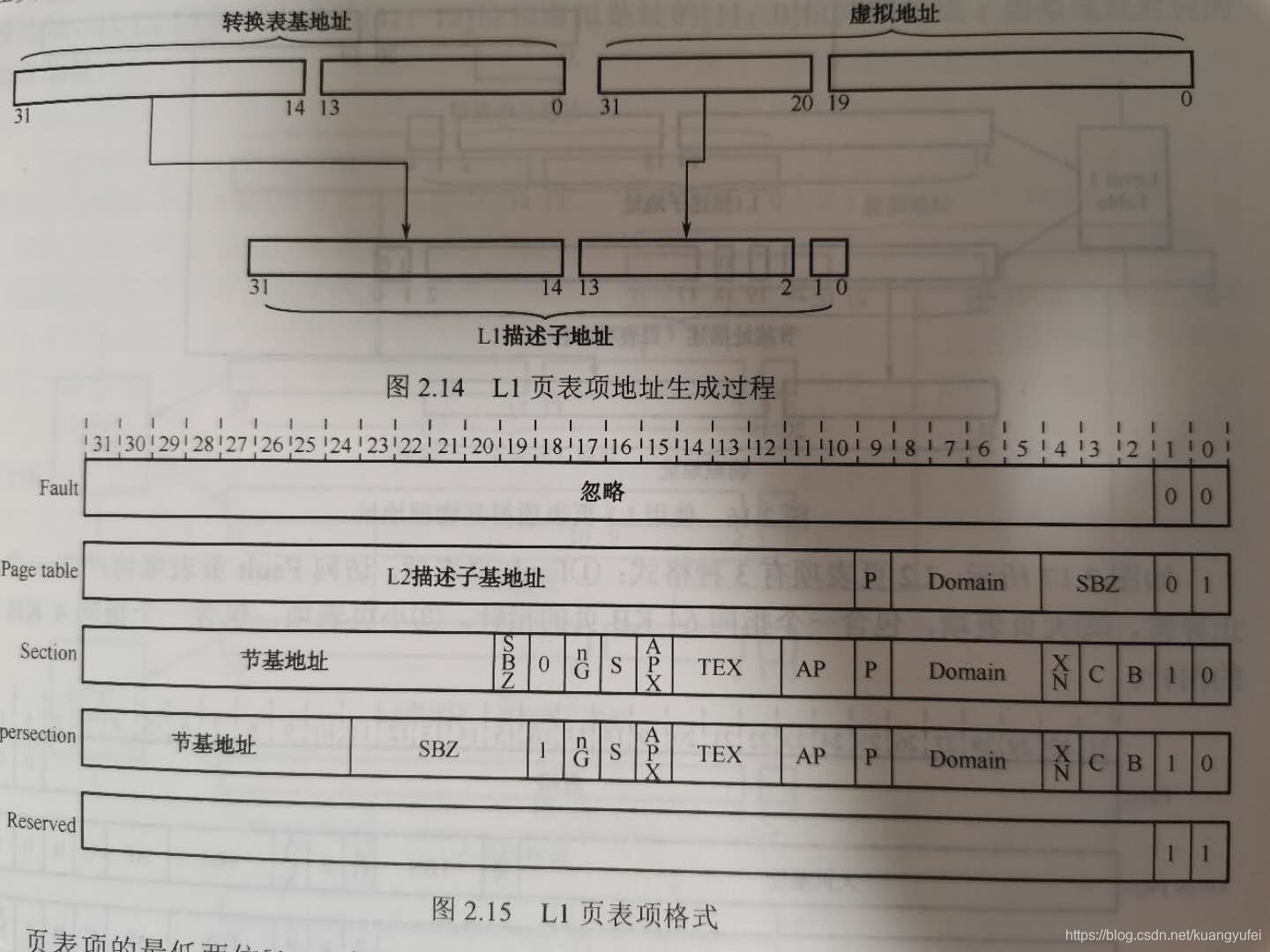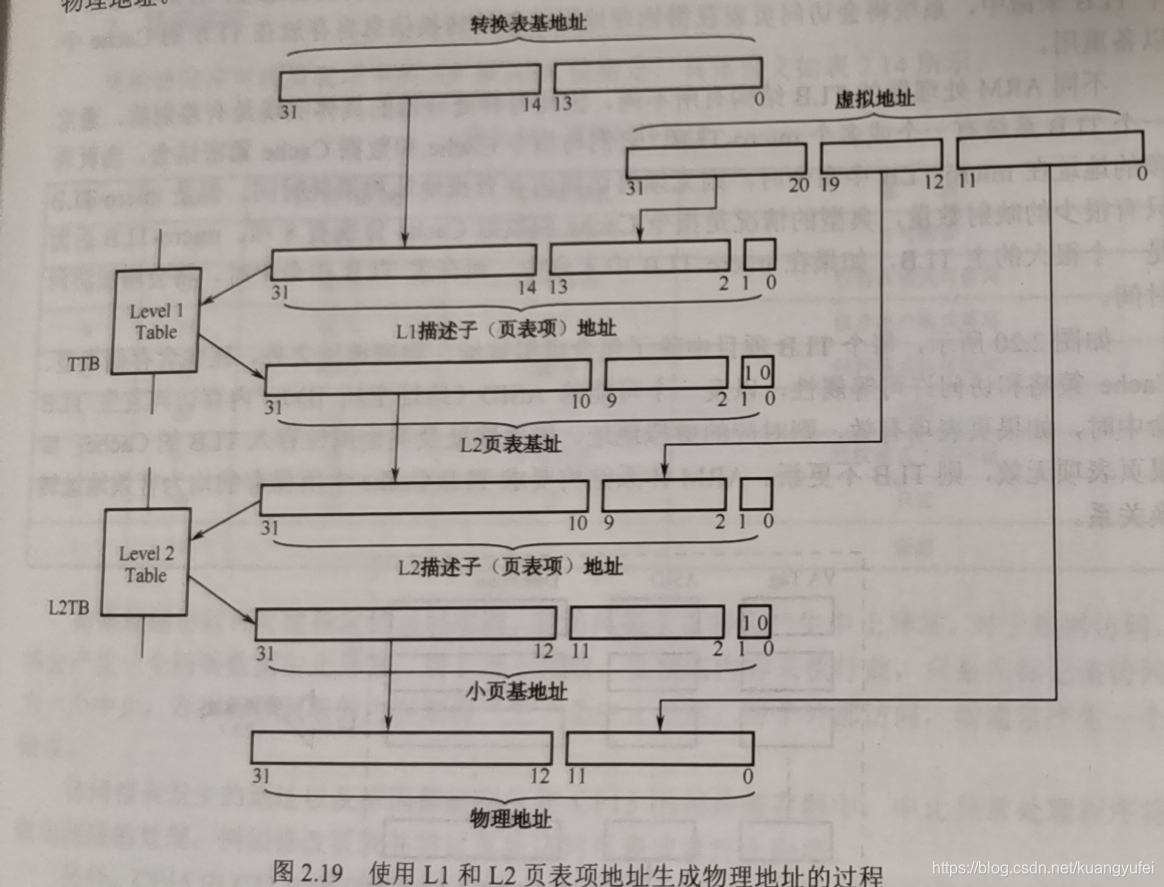 L2页表中包含256个页表项,每个32位(4个字节),L2页表需要 256*4 = 1K的空间,必须按1K对齐,每个L2页表项将4K的虚拟内存地址转换为物理地址,每个L2页面项都给出了一个4K的页基地址。