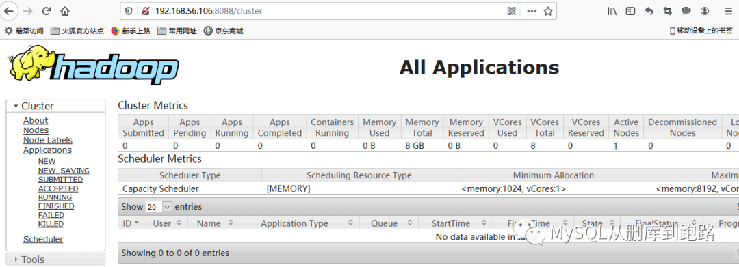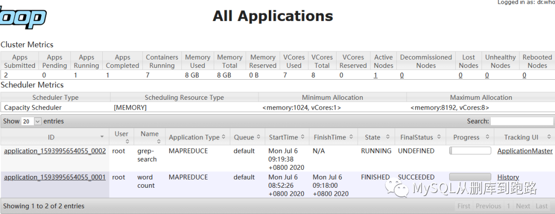 已完成和正在运行的mapreduce任务都可以在8088里查看,上图有gerp和wordcount两个任务。