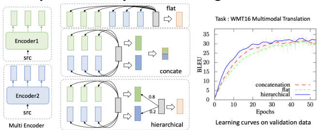 该论文作者在多模态机器翻译任务上的实验发现 hierarchical 模式效果最显著,因此之后进行多模态信息融合序列学习的各类工作一般是采用 hierarchical 模式 的注意力机制。