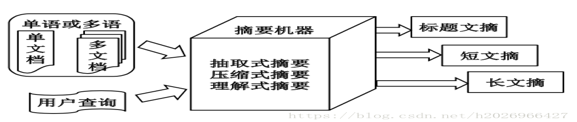 抽取、压缩式摘要:直接从原文中抽取已有的句子,并简化原文中的重要句子组成摘要