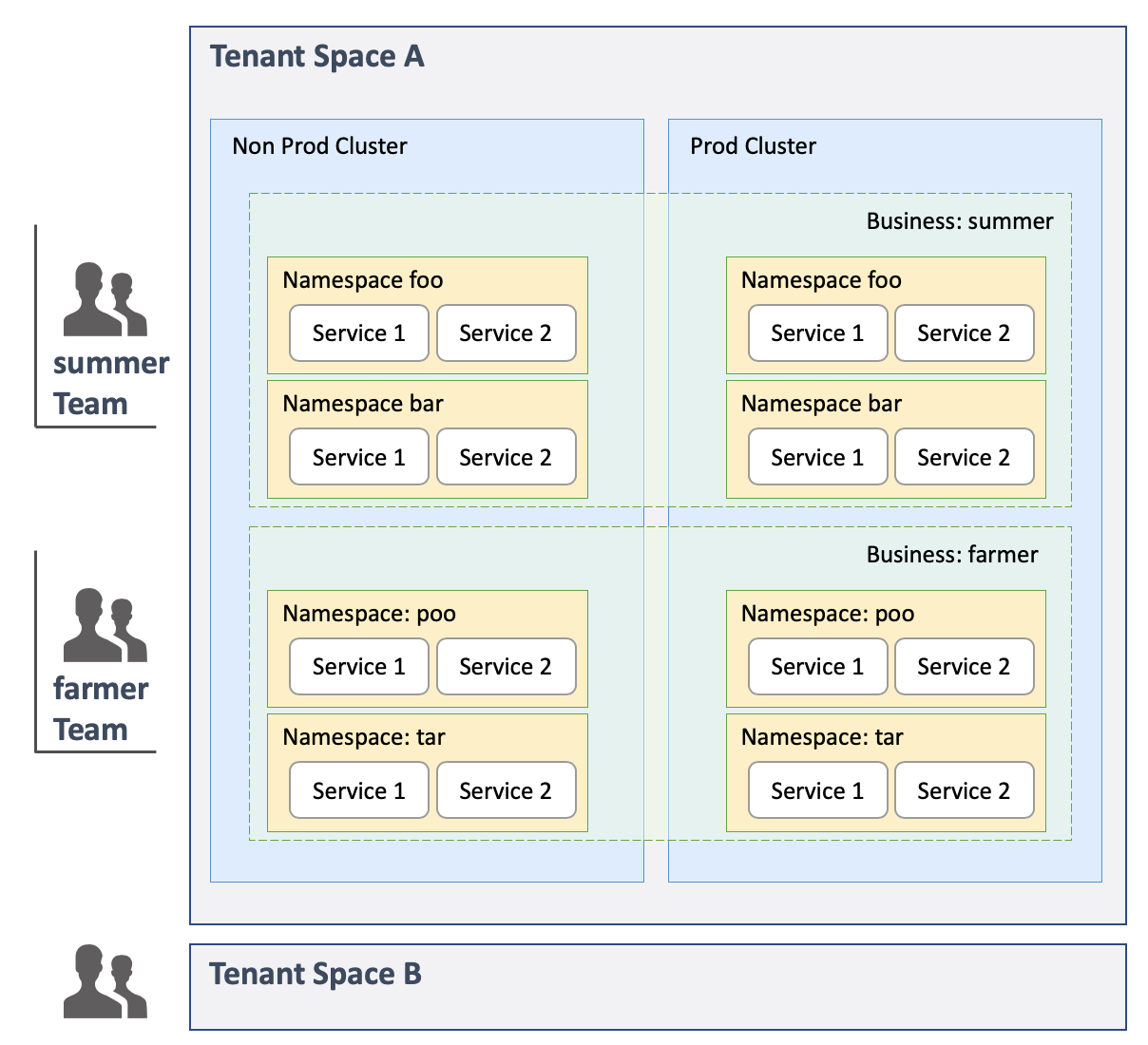支持多租户管理和租户间隔离,不仅仅局限于账号,而是包括集群、命名空间、业务、镜像仓库等等,满足大中型规模企业管理的需求。并且在租户层次之下,拥有业务的概念,业务可以横跨集群,为用户提供统一的配额管理、命名空间、业务配额以及镜像仓库和应用商店等管理能力,方便用户在多集群场景下编排业务应用。