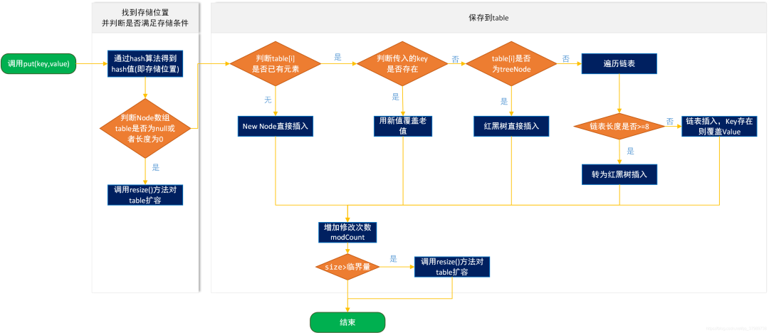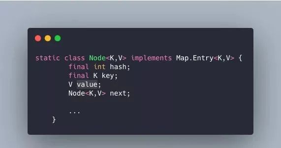 (1)数组+链表+红黑树构成,每个数据单元为一个Node结构,Node结构中有key字段、value字段、next字段、hash字段