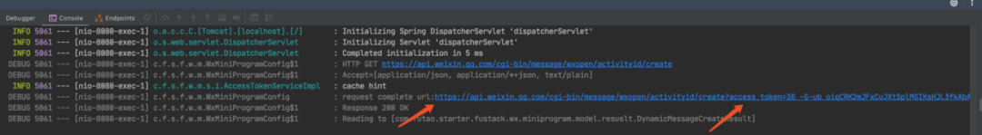ResponseEntity<DynamicMessageCreateResult> messageCreateResultResponseEntity = WxMiniProgramConfig.REST_TEMPLATE.getForEntity(url, DynamicMessageCreateResult.class);
