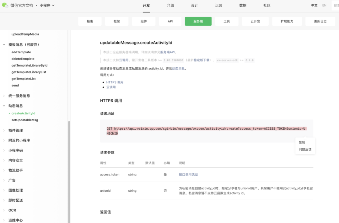 想要请求的接口: GET https://api.weixin.qq.com/cgi-bin/message/wxopen/activityid/create?access_token=ACCESS_TOKEN&unionid=UNIONID