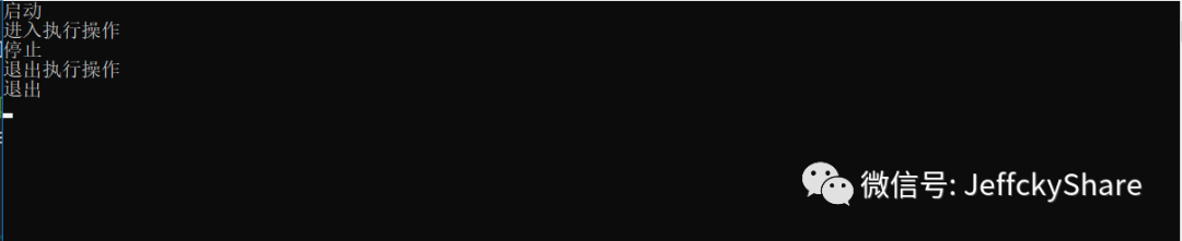 通过上述简单代码实现作业练习,接下来我们在控制台调用启动和停止,看看结果是否符合预期