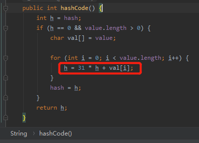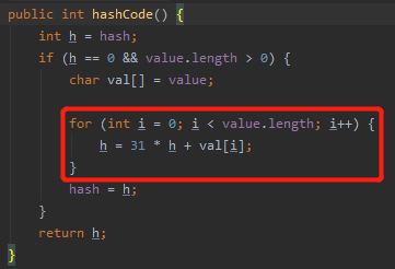 hashCode 算法,最主要的就是其中的这个 for 循环。