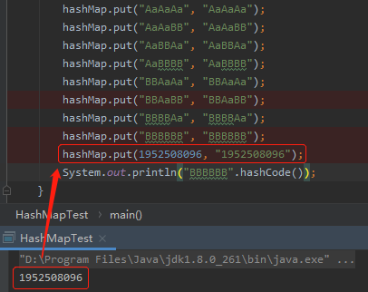 4*2=8 种组合方式,我们又能得到 8 个 hashCode 一样的字符串了。