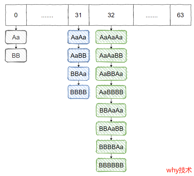 Aa 和 BB 的 HashCode 是一样的。我们把它两一排列组合,那不还是一样的吗?
