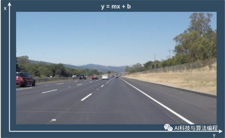 图像是一个 2D 矩阵,超过一些 x 和 y 坐标系,一条线可以描述为y = mx + b