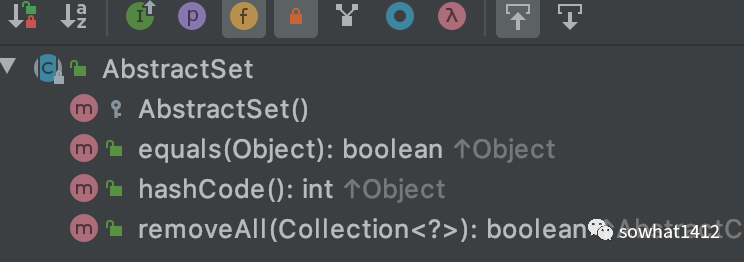 HashSet实现了Set<E>的接口,同时它还继承自AbstractSet<E>这个骨架类(类中有一些公用方法)