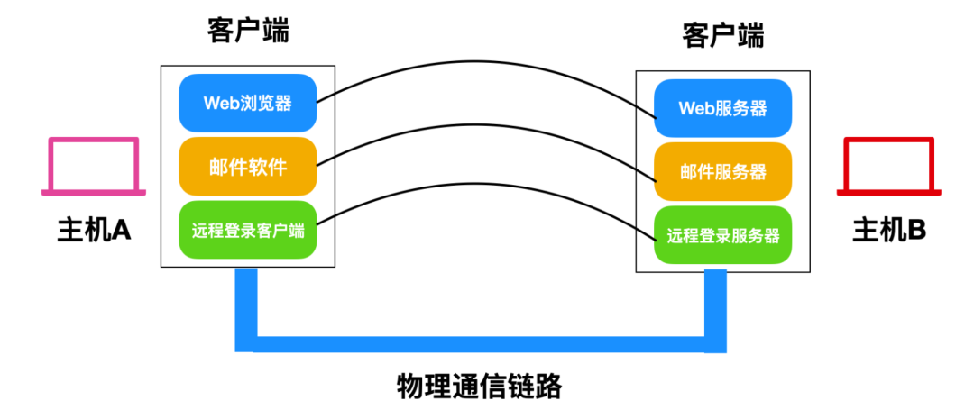 在 TCP/IP 协议簇中,将 OSI 标准模型中的会话层、表示层都归为了应用层。应用层的架构大多属于客户端/服务端模型,提供服务的程序叫做服务端、接受服务的程序叫做服务端。在这种架构中,服务端通常会提前部署到服务器上,等待客户端的连接,从而提供服务。