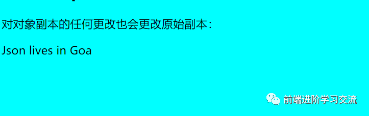 var user = {firstName:"维沙尔", lastName:"乔达里", age:22, location:"新德里"};var x = user;x.location = "Goa";// 这将同时更改x.location和user.location