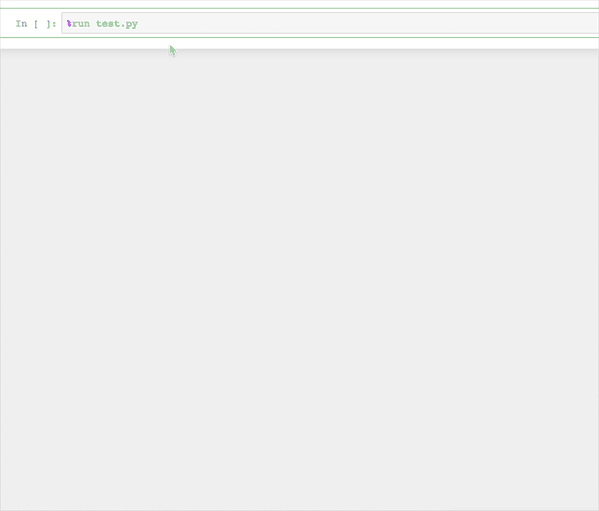 上面是直接打开外部文件,那么能不能直接运行?答案是可以的,只要使用%run xxx.py即可在notebook中运行Python脚本并输出结果,以运行当前工作目录下的test.py为例