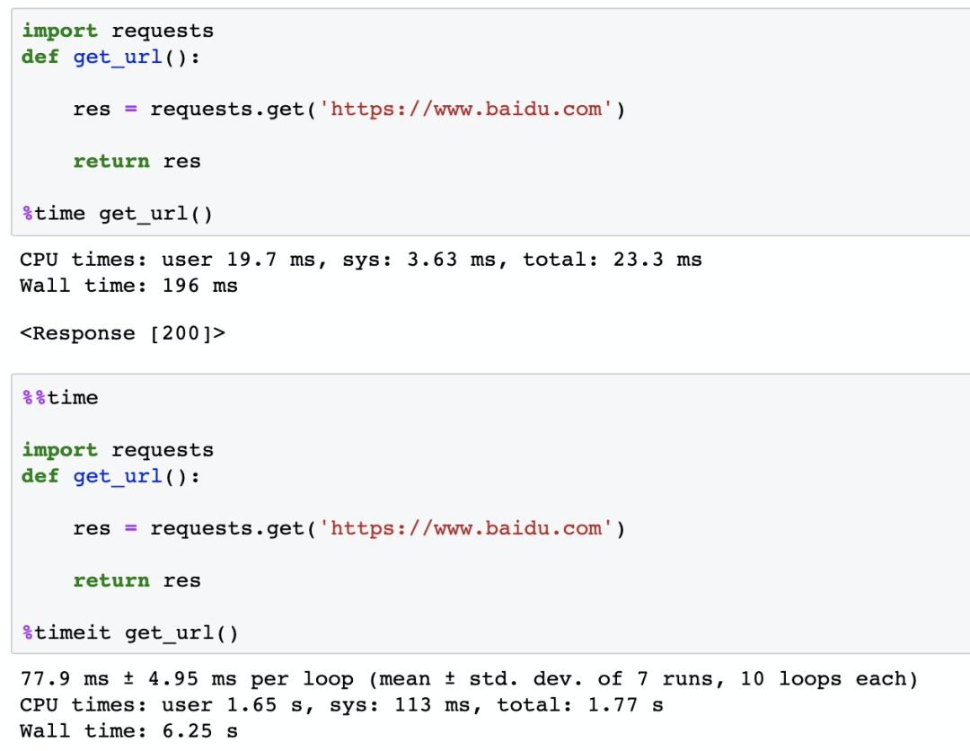 有时候我们需要计算一些函数或过程运行时间,以此来衡量代码的效率,在其他IDE可能需要写个函数或者使用第三方模块来完成,而在Notebook中,提供了便捷的魔法函数👇