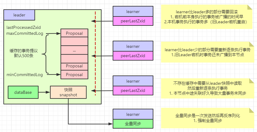 - epoch则表示当前集群中Leader所处的轮期,每次Leader变更都会自增1,是Zxid的高32位。