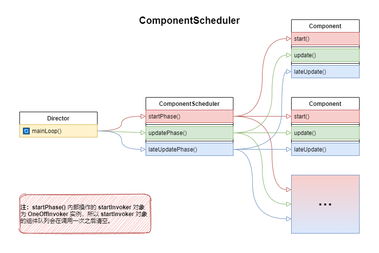 而 scheduleOnce() 接口则是在组件的 schedule() 接口之外又加了一层封装,固定只会在指定时间后执行一次。