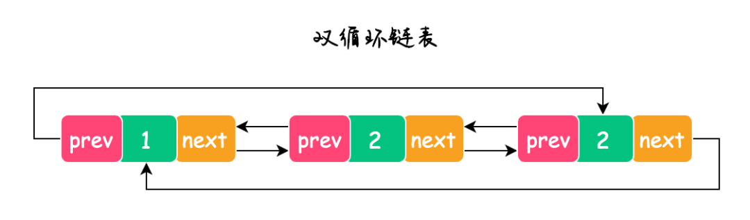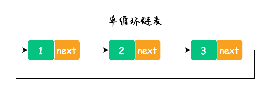 循环链表又分为单循环链表和双循环链表,也就是将单向链表或双向链表的首尾节点进行连接,这样就实现了单循环链表或双循环链表了,如下图所示: