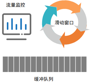 通过监控组件获取流量增长率,如果出现流量突增,则动态调低滑动窗口阈值以降低内部流量;当流量恢复平缓,恢复滑动窗口最初阈值以充分利用系统资源。
