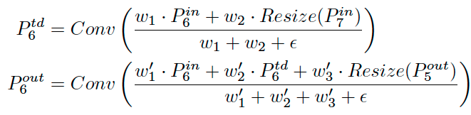 feature_maps[p] = fuse_conv(w1 * below + w2 * inputs[p], name=name)