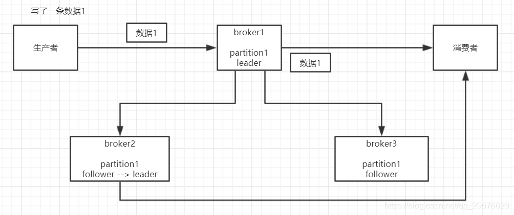 写数据的时候,生产者就写leader,然后leader将数据落地写本地磁盘,接着其他follower自己主动从leader来pull数据。一旦所有follower同步好数据了,就会发送ack给leader,leader收到所有follower的ack之后,就会返回写成功的消息给生产者。(当然,这只是其中一种模式,还可以适当调整这个行为)
