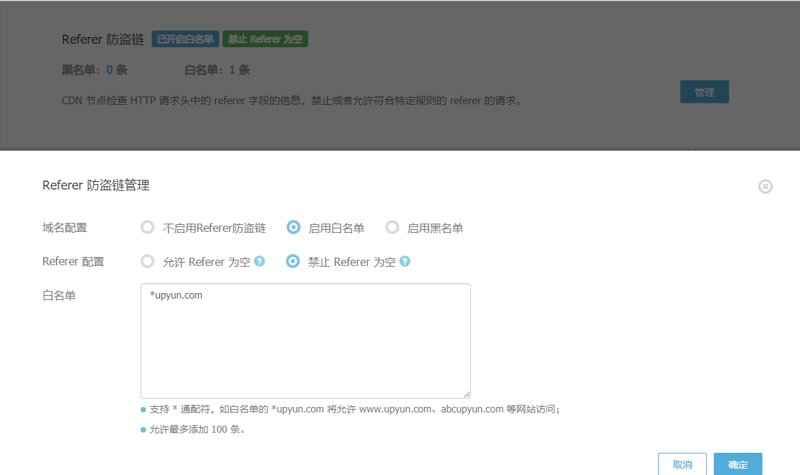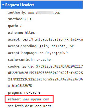 当我们接入又拍云CDN,并配置 Referer 防盗链后,怎么通过Chrome浏览器去验证是否配置成功呢?如图,我配置了Referer白名单并禁止Referer为空。