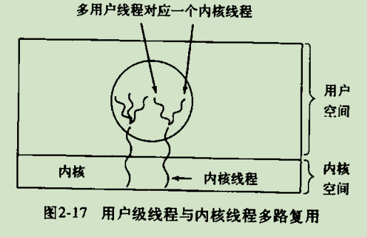 用户级线程无论如何是基于至少一个内核线程/进程的,多个用户级线程可以挂载在一个内核线程/进程中被内核统一的调度管理。