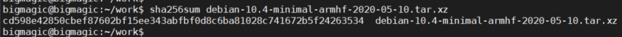 sha256sum debian-10.4-minimal-armhf-2020-05-10.tar.xz