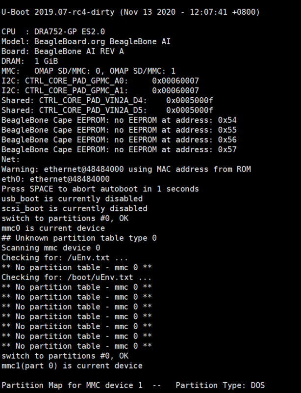 按照https://github.com/beagleboard/beaglebone-ai/BeagleBone-AI_sch.pdf上标注,可以知道,在启动上,首先会从USB中寻找程序,然后第二启动项是SD卡,接着是eMMC。