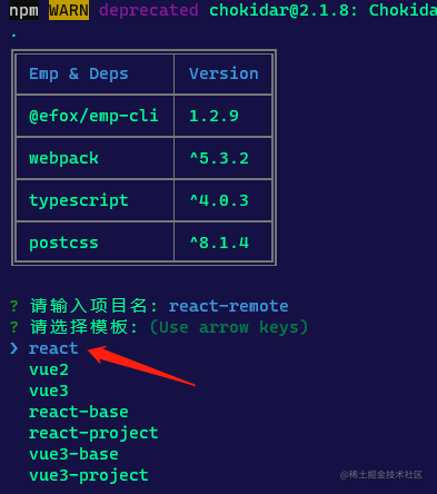 使用 emp-cli , npx @efox/emp-cli init,选择 React 模板