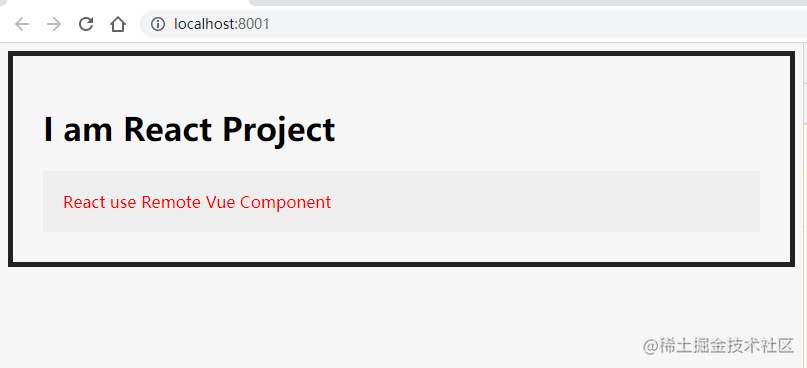 启动项目 yarn dev,可以看到本项目的组件和远程引用的 React 组件