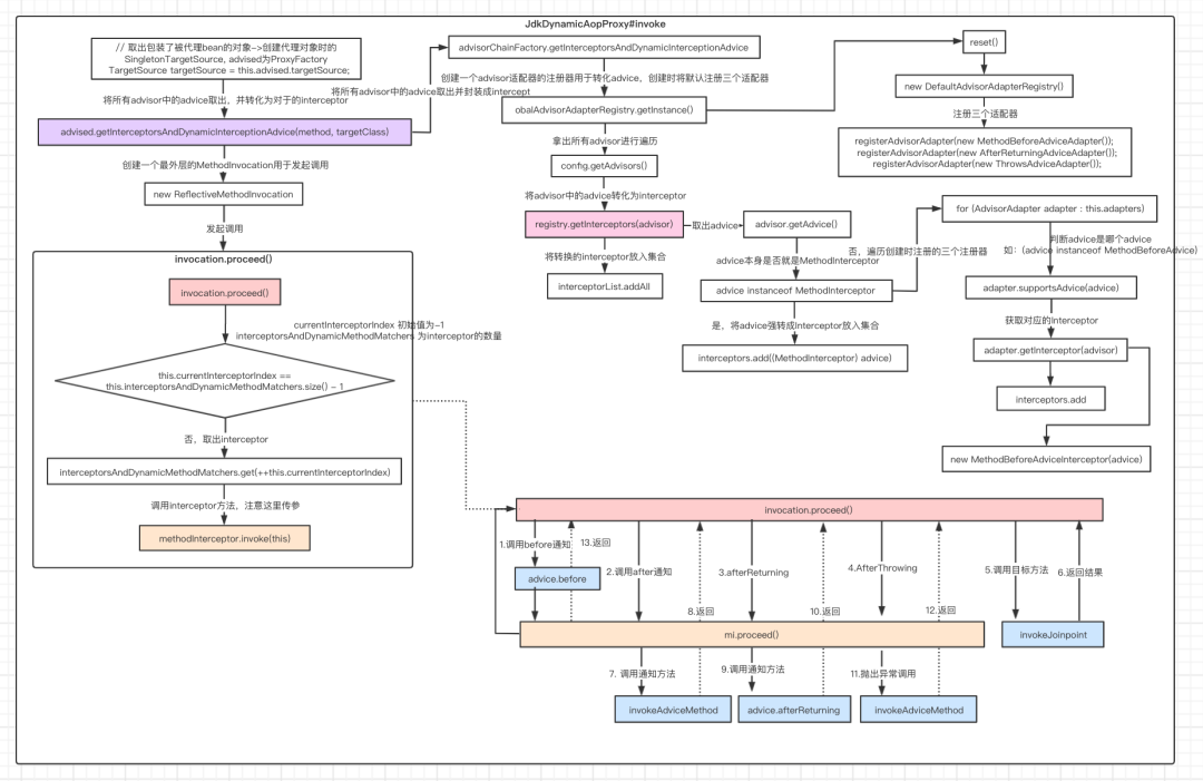 // 有些是递的时候发起调用,如beforeAdvice, 但有些则是归的时候发起调用,如afterAdvice