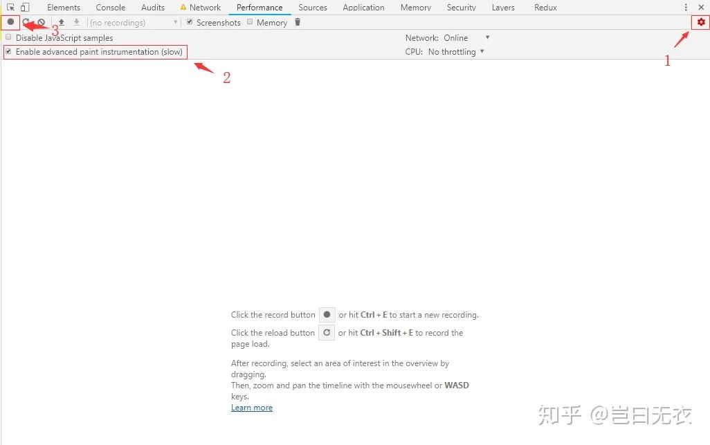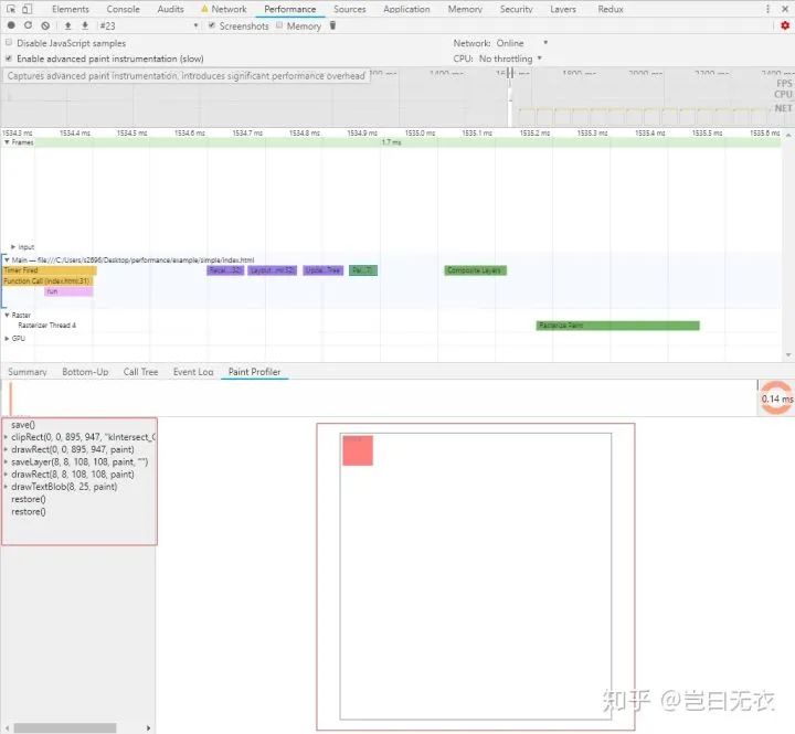 首先,我们来看下没有经过优化的情况;顺带说明查看浏览器一帧绘制详情的过程。