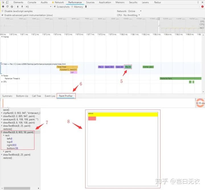 切换到 Paint Profiler 选项卡(标记 6),查看绘制的步骤。