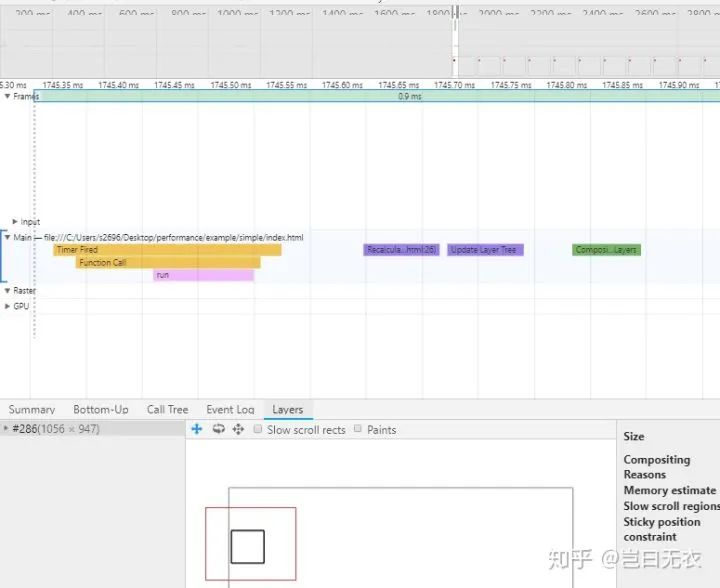 这时,把 div 节点提升为 Composited Layer,我们发现 Layout 和 Paint 已经被略过了,符合我们的预期。