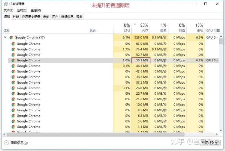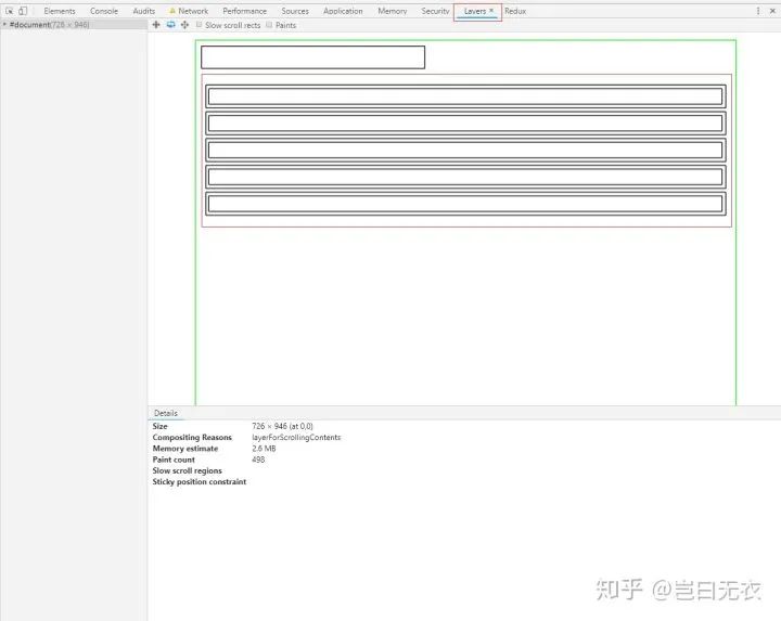 当然,如果兄弟元素一定要覆盖在 Composited Layer 之上,那我们也可以把 overflow: hidden; 或者 position: relative; 去掉,来优化 Composited Layer 创建的数量或者直接就不创建 Composited Layer。