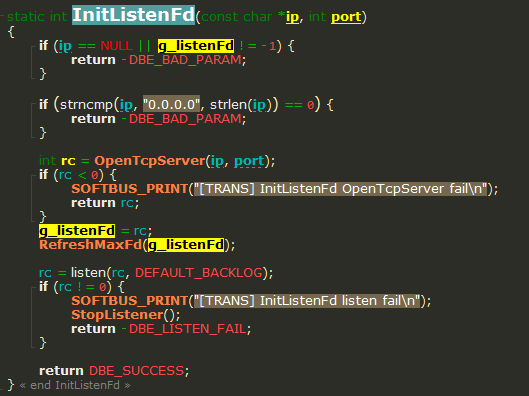 StartListener()调用InitListenFd()函数完成监听TCP socket的创建和监听,其中IP地址和端口号由上层调用者指定。