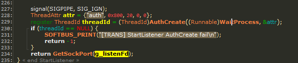 如上文所述,AuthCreate()在不同平台上会有不同的实现,在LITEOS_A和Linux平台上, AuthCreate()会调用兼容POSIX的pthread_create()完成线程的创建,线程的入口函数为static void WaitProcess(void)。