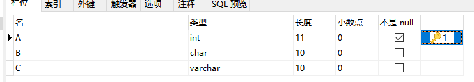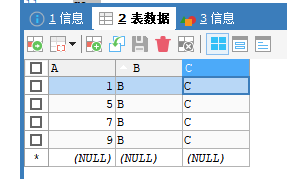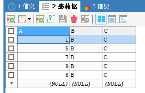 添加聚集索引,再查询数据显示则如下,此时发现表的顺序发生了变化,此时的排序按A字段的递增排序。这就说明了使用聚集索引如果插入新数据会进行重新排序