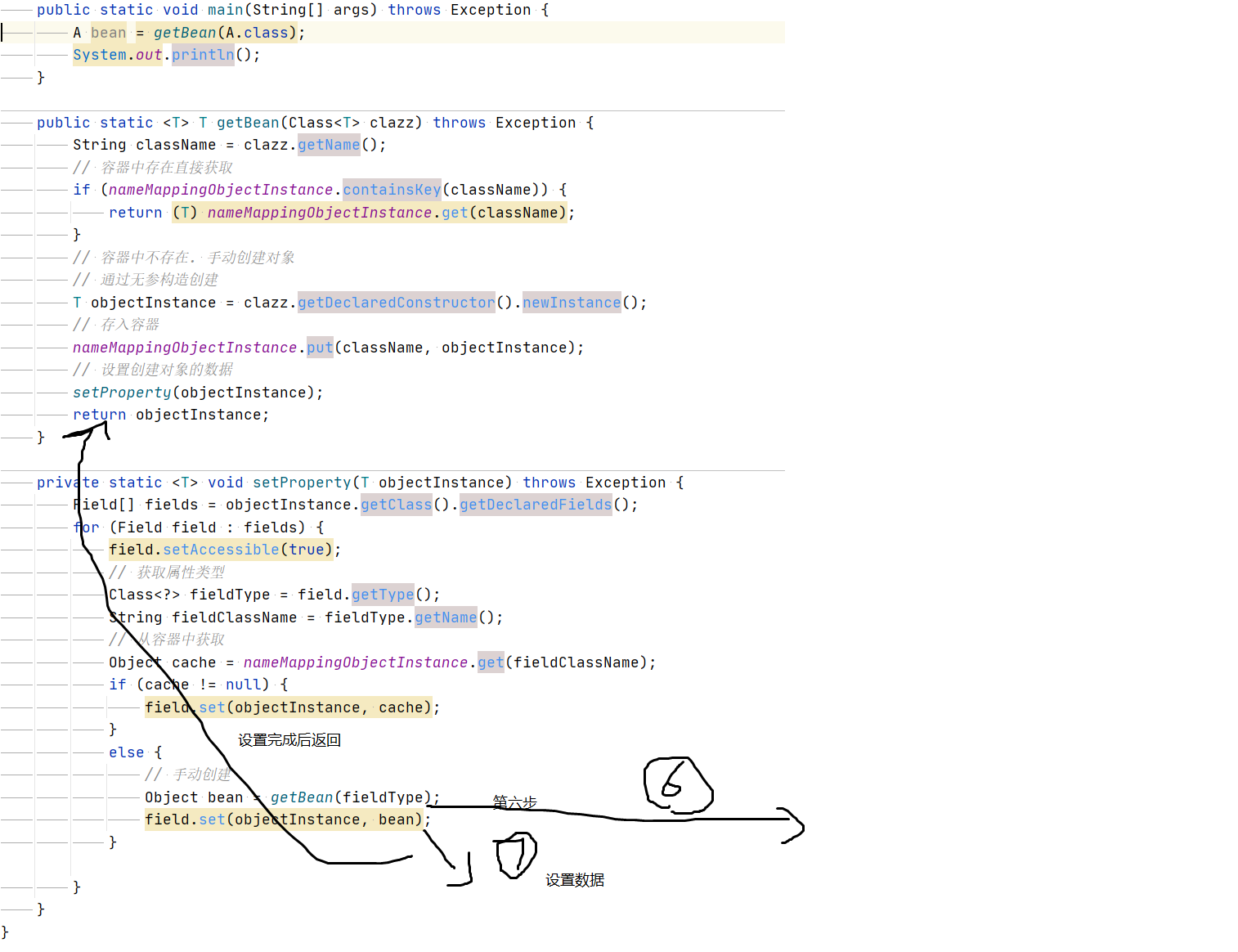 容器准备好了之后就是对单个类的处理. 1. 创建对象 2. 设置属性