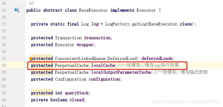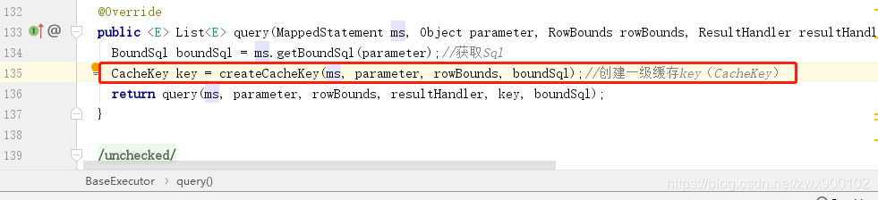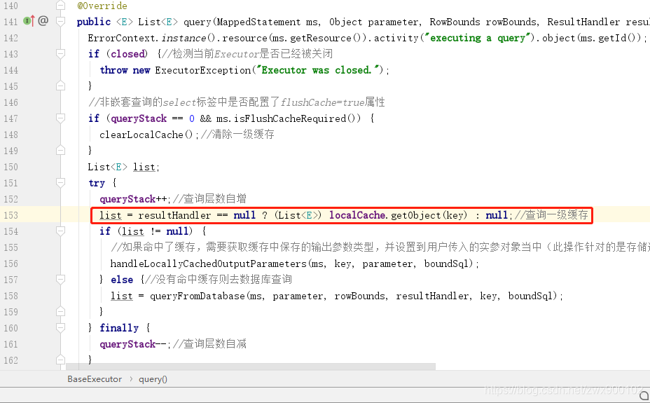 既然缓存那么肯定是针对的查询语句,一级缓存的创建就是在BaseExecutor中的query方法内创建的: