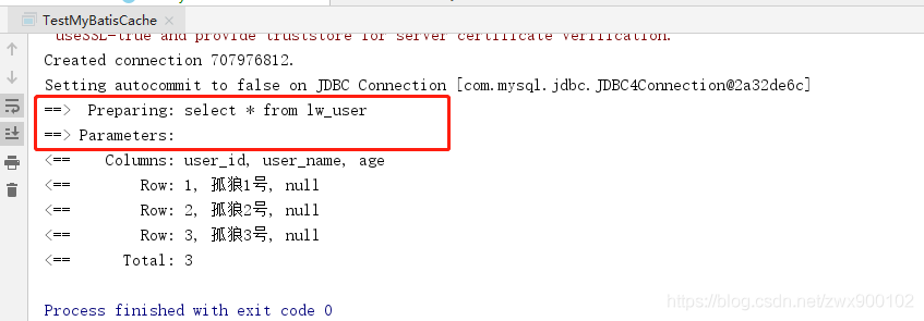 上面输出结果中只输出了一次sql,说明用到了缓存,而因为我们是跨会话的,所以肯定就是二级缓存生效了。