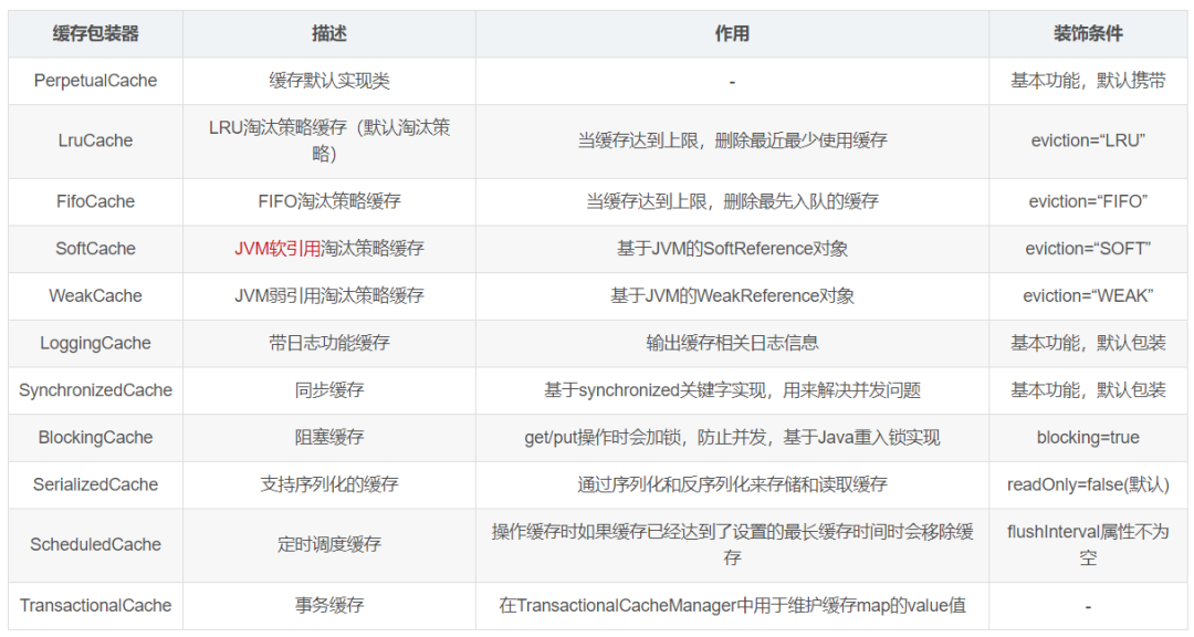 下面就是MyBatis中所有缓存的包装汇总: