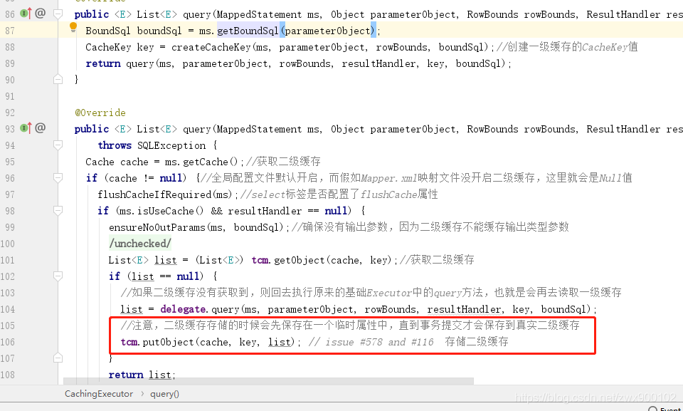 接下来我们看看CachingExecutor中的query方法: