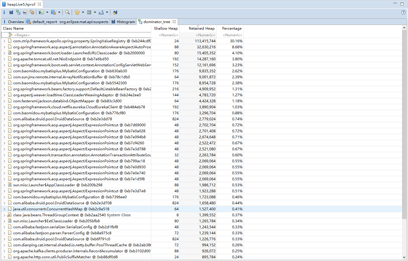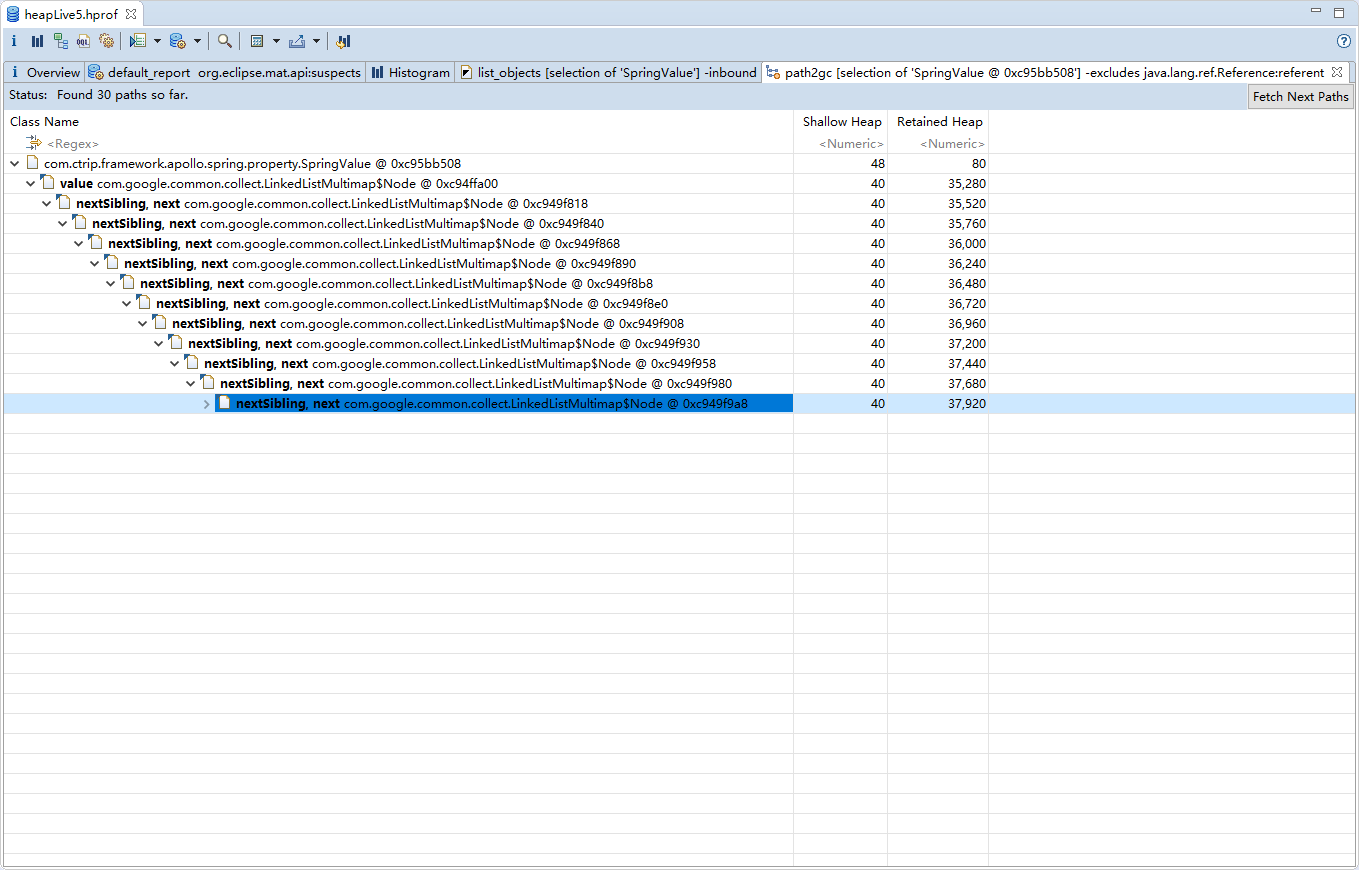 - Shallow Heap :一个对象内存的消耗大小,不包含对其他对象的引用