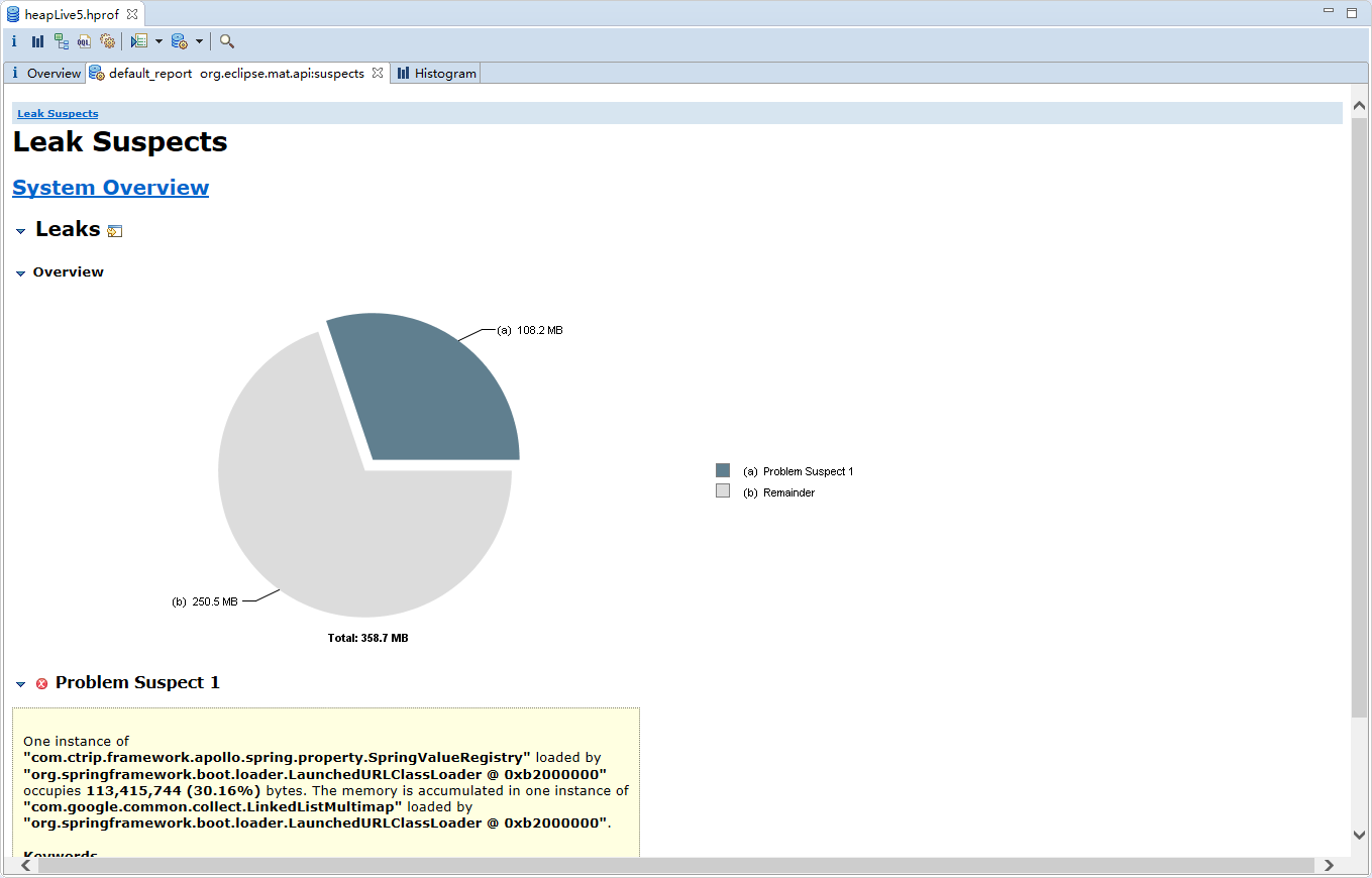 - 自动分析内存内存泄漏的原因,可以直接定位到Class,且行数